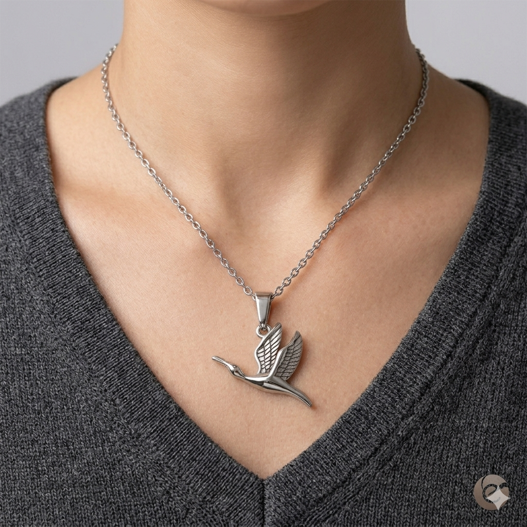 Krásny prívesok Letiaci vták. Vyrobený z kvalitnej vysokolesklej ušľachtilej ocele, ktorá je veľmi pevná, odolná a udržiava si vysoký lesk. Rozmery: 2,5x1,5cm